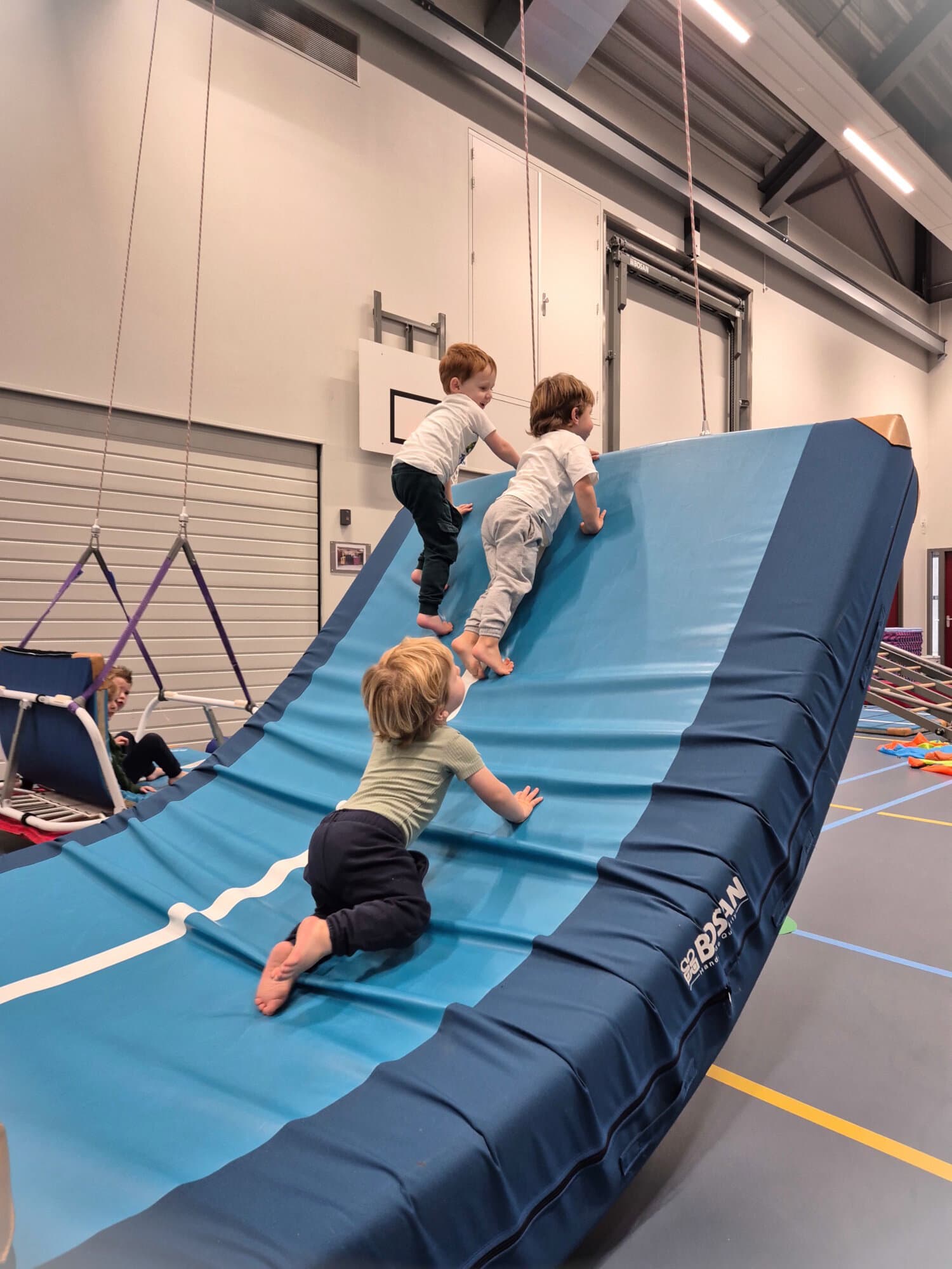 - Vrij spel: Kinderen hebben de vrijheid om de zaal te ontdekken met activiteiten aangepast aan hun niveau en op een veilige hoogte.